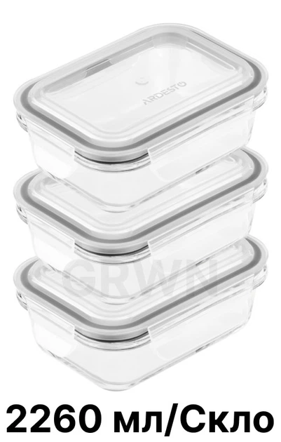 Набір контейнерів для зберігання скляних - 3 шт Ardesto Gemini термостійкі прямокутний 2.26 л AR1222RC