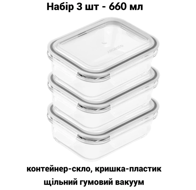 Набір контейнерів для зберігання скляних - 3 шт Ardesto Gemini термостійкі прямокутні 660 мл AR1260BRC