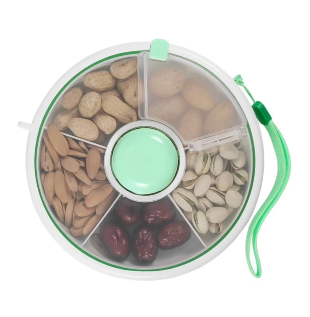 Ланчбокс обертайний для перекусів на 5 секцій, Контейнер для снеків, овочів, горіхів Зелений