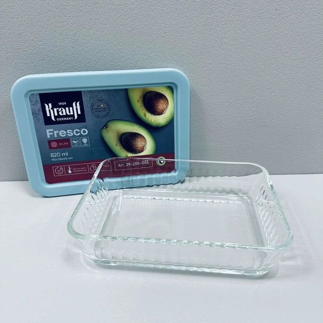 Контейнер скляний прямокутний із пластиковою кришкою 820 мл Krauff Fresco