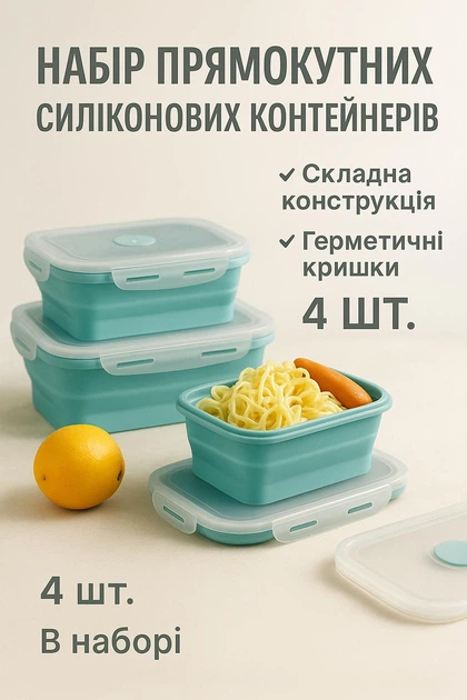 Набір силіконових контейнерів Empire Універсал 4 шт з кришками, складні, різні об’єми, прямокутна форма