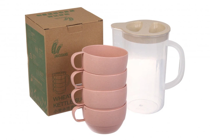 Набір-глечик 1,6л +4 чашки 360 мл, еко-пластик, колір рожевий