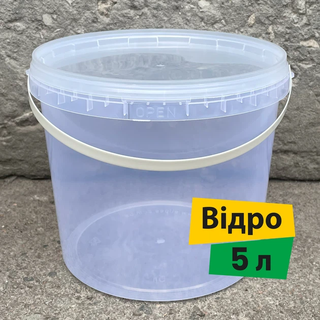 Відро 5 л з кришкою, харчовий прозорий пластик