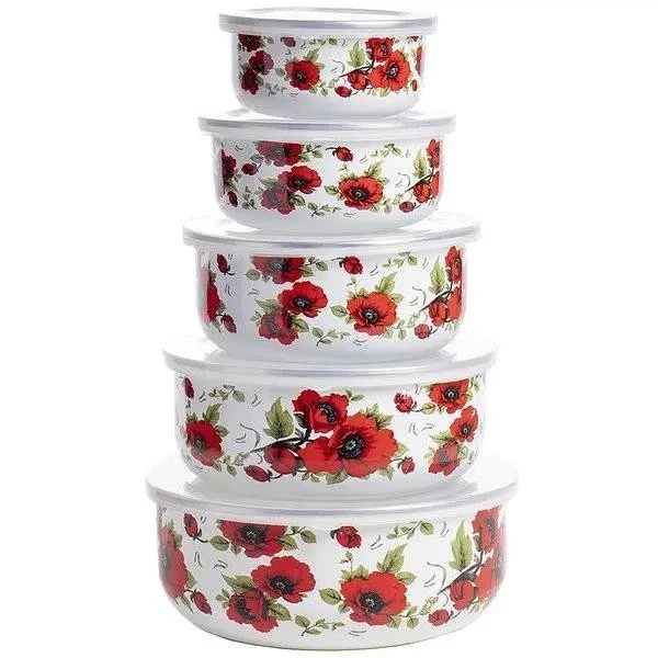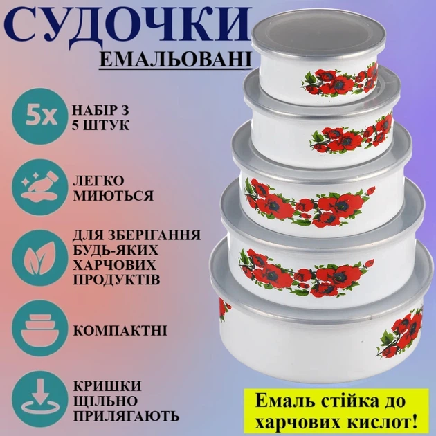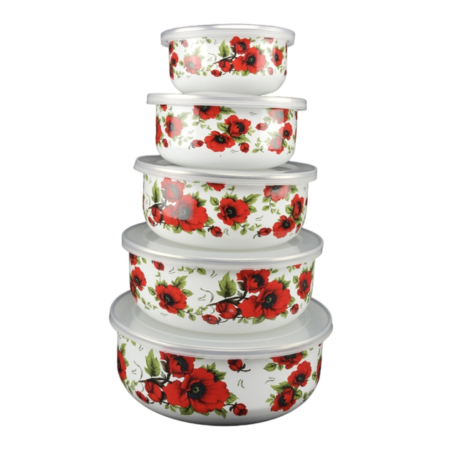 Набір круглих судочків A-PLUS 5 шт (0967) Емаль "Маки"