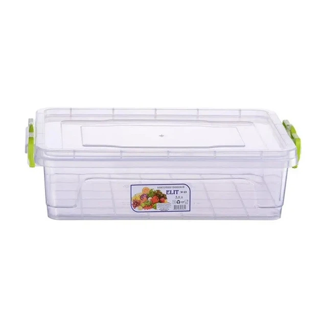 Контейнер 3л, для зберігання продуктів з затискачами, низький-"Elit" Ал-Пластик прозорий SE-AlPlast-kon-03