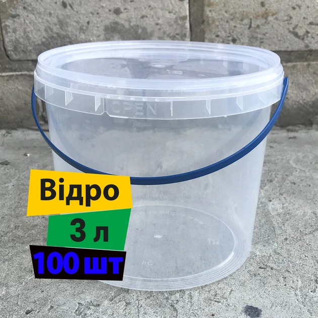 Відро 3 л з кришкою (100 шт), харчовий прозорий пластик