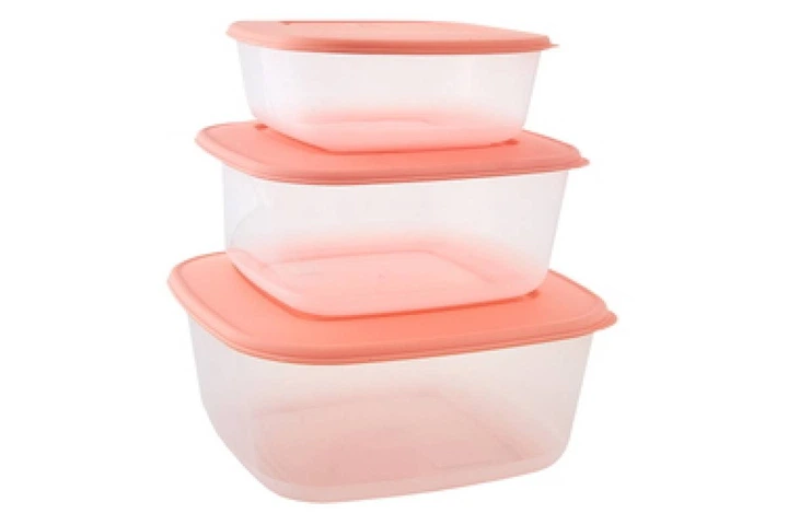 Набір квадратних контейнерів для харчових продуктів Алеана 3 персиковий 167010