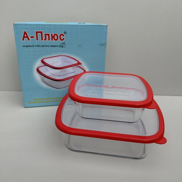 Набір скляних квадратних лотків 2 шт A-Plus 1085 червоний