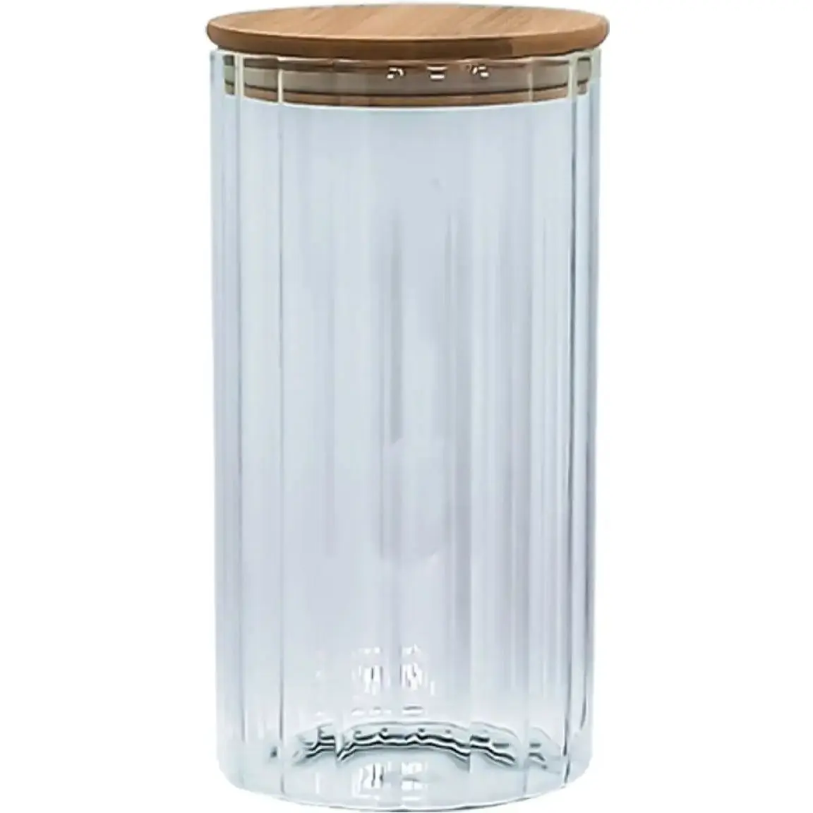 Ємність скляна Vittora з дерев'яною кришкою кругла смугаста 1300 мл VT-7613 (135499)