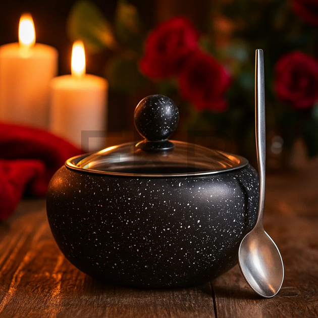 Цукорниця нержавіюча 450 мл із скляною кришкою та ложкою Чорний Edenberg EB-18031