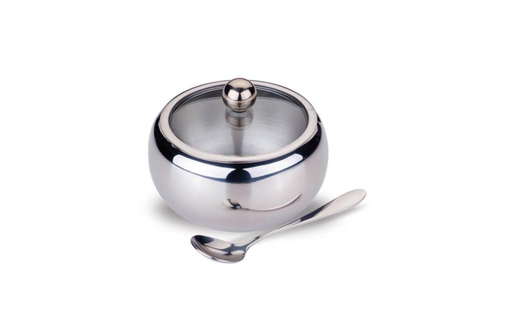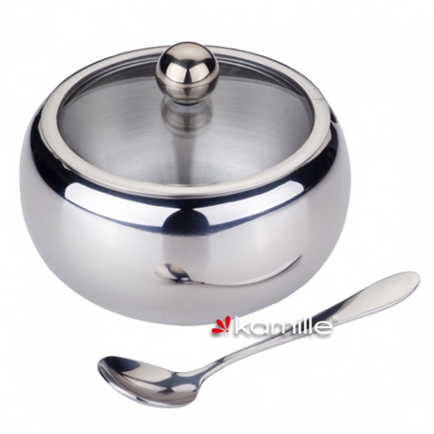 Цукорниця з нержавіючої сталі 460мл із ложечкою і скляною кришкою Kamille 7002