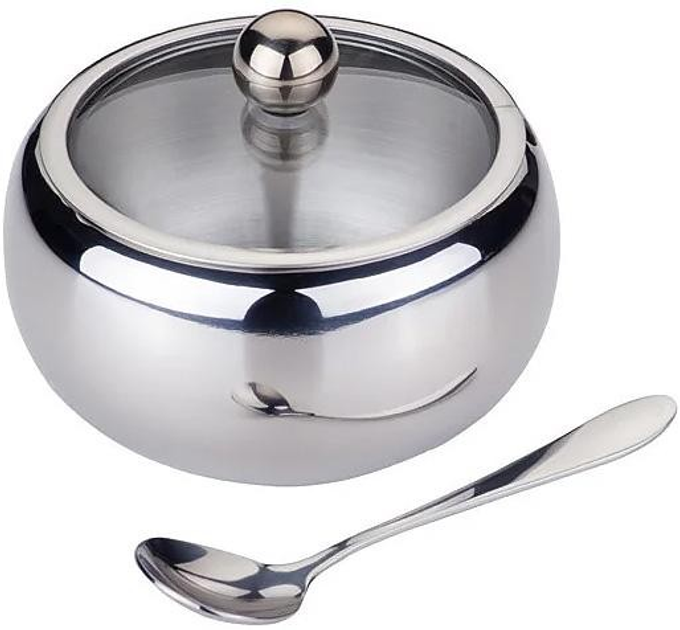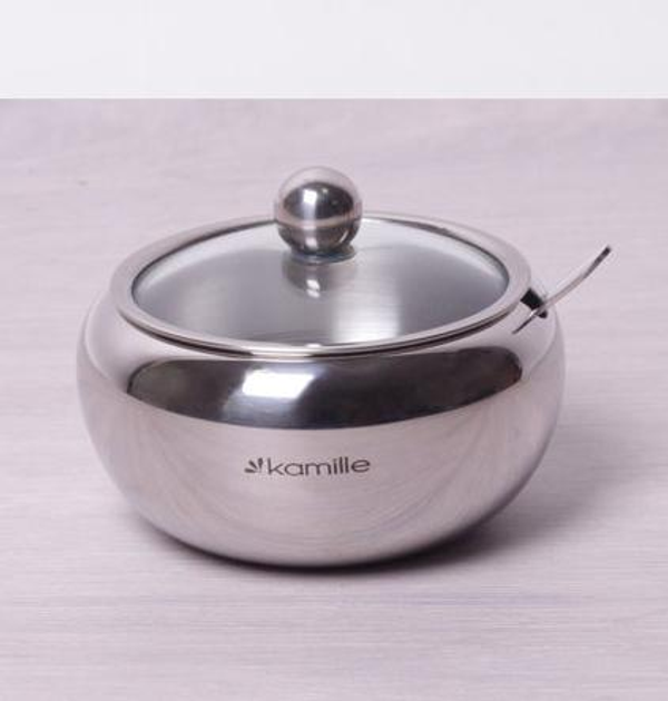 Цукорниця Kamille 560мл нержавійка з ложкою і скляною кришкою (111570)