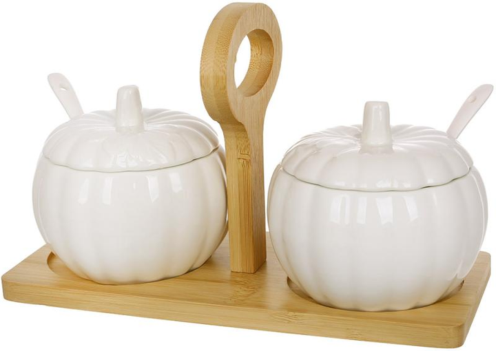 Набір цукорниць/соусників Nouvelle Home Гарбуз 2 ємності по 250мл на дерев'яній підставці (BD-938-041)
