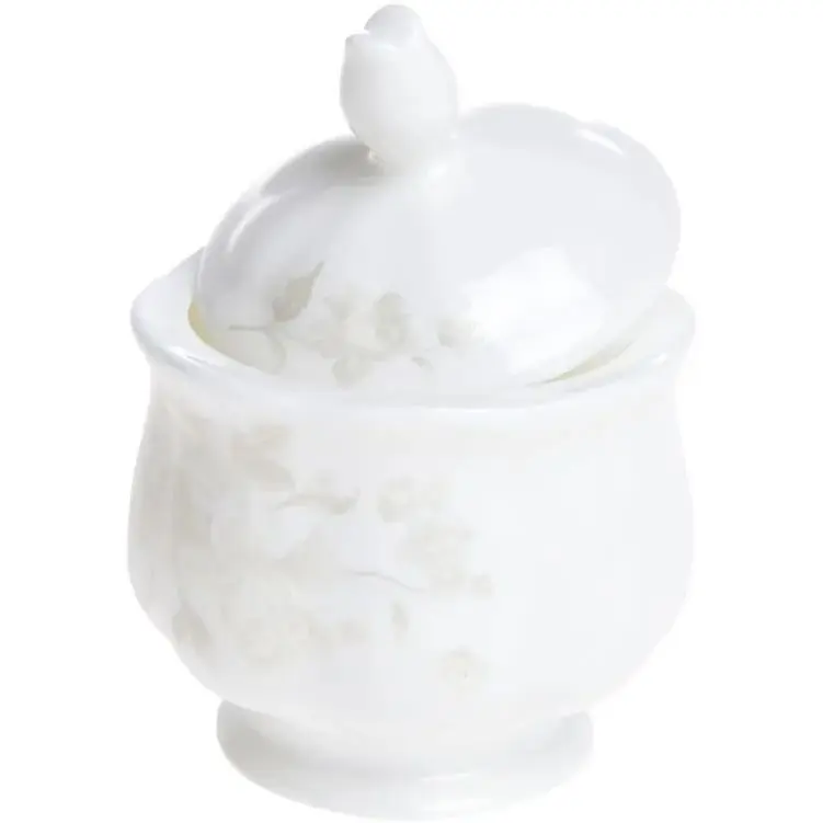 Цукорниця виготовлена з кістяної порцеляни, яка відрізняється особливою вишуканістю. Вироби з неї настільки тонкі, що можна побачити, як вони просвічуються. Компактна цукорниця декорована красивим квітковим візерунком світло-сірого кольору. Вона прикрасить кожен стіл і стане чудовим подарунком для ваших близьких. Ви можете купити цукорницю окремо або в комплекті з сервізом, в який також входять чайник, чашки з блюдцями, молочник. Перегляньте інші товари з подібними характеристикамиСтол