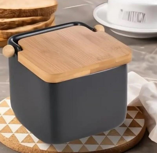 Цукорниця Ardesto 840 мл контейнер для зберігання 12*12*11 см банка для сипучих ємність чорного кольору для кави чаю цукру A