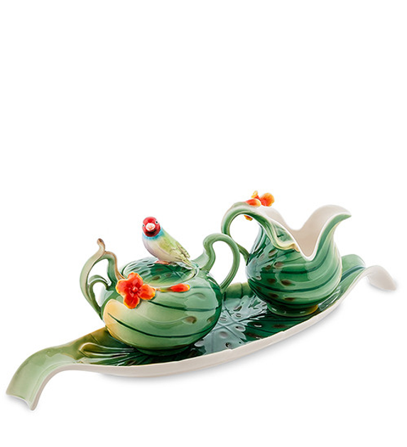 Чайний набір фарфоровий цукорниця та молочник Папуга 6001106