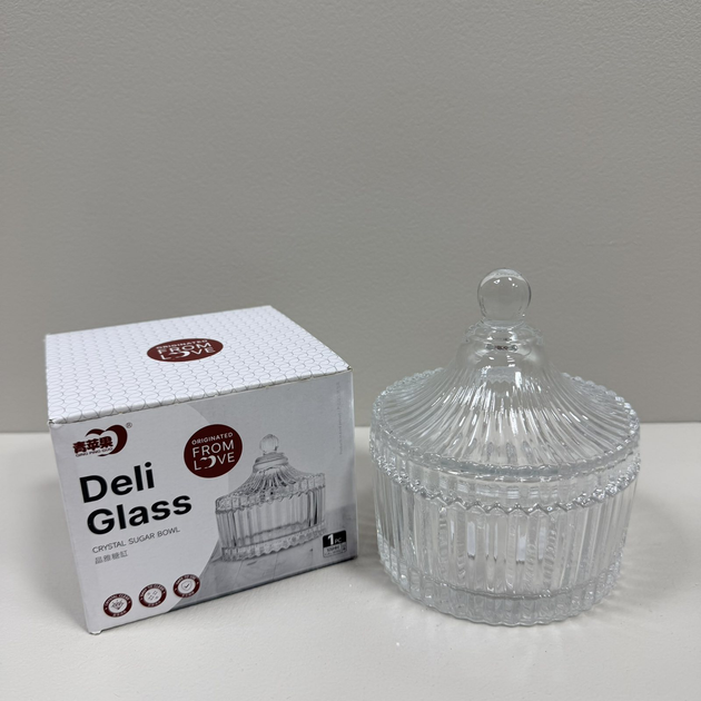 Цукорниця скляна Crystal Glass 300мл зі скляною кришкою, прозора (BD-992-281)