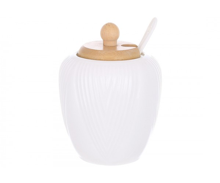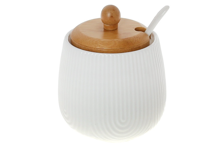 Цукорниця фарфорова з ложкою та бамбуковою кришкою Grace D8*5*12см
