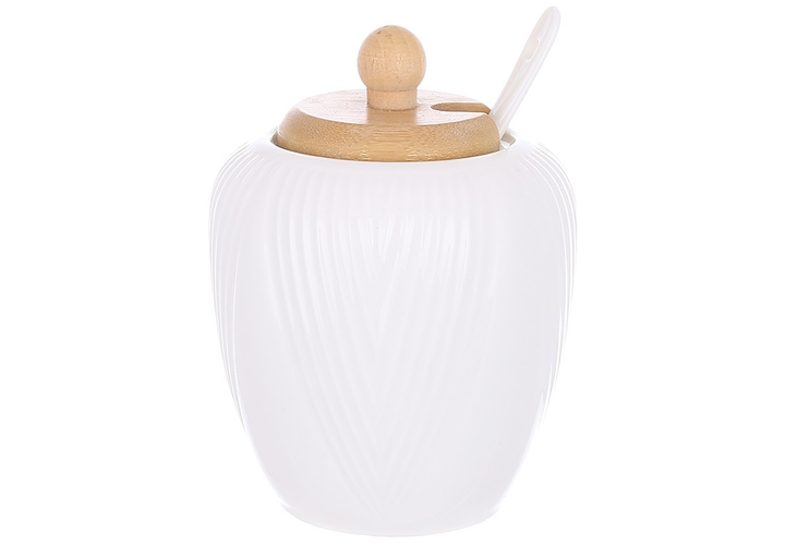 Цукорниця порцелянова з ложкою та бамбуковою кришкою Grace D8*5*12 см 289-408
