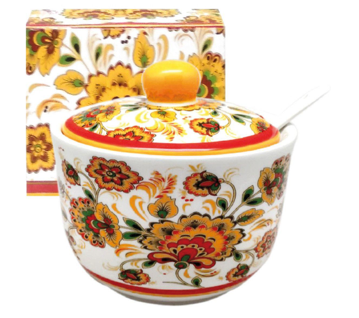 Цукорниця з ложкою 450мл "Квітковий розпис" (d-11см, h-7,5см) 2242-16