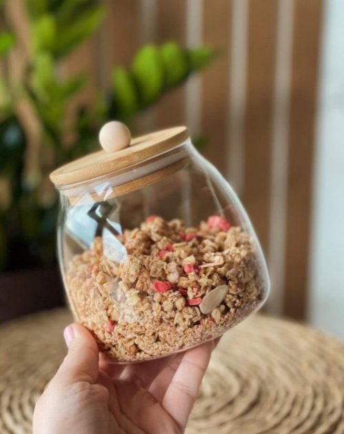 Скляна цукорниця з дерев'яною кришкою + ложка