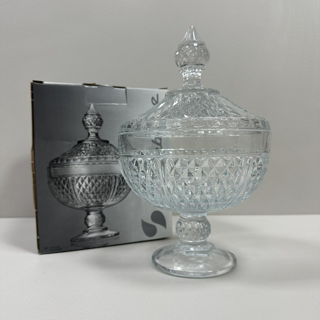 Цукорниця скляна з кришкою на ніжці h-25 см, d-15.4 см Pasabahce Diamond 97242