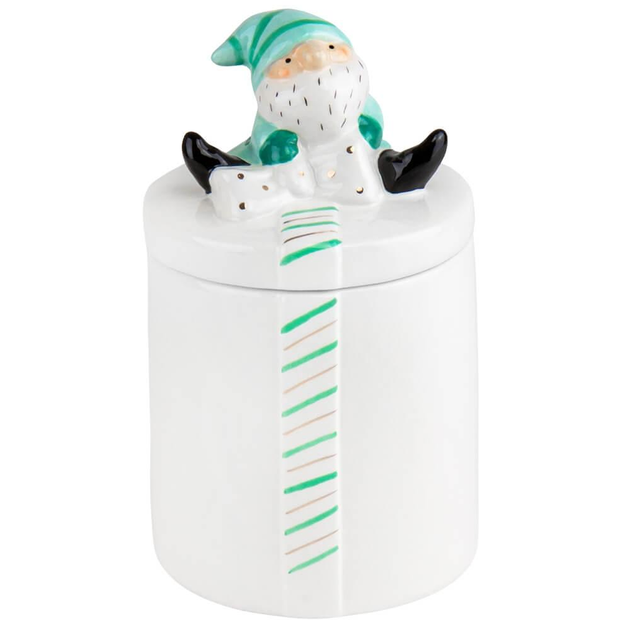 Новорічна цукорниця керамічна Подарунок від Санти 22 см Біло-Зелений (135-81-4000-045)