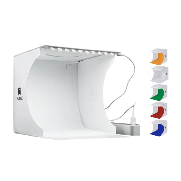 Лайтбокс (фотобокс) Puluz PU5022 з LED світлом для предметної фотозйомки (макрозйомки) 20 х 20 х 20 см, 2 Лампи, 6 Фонів
