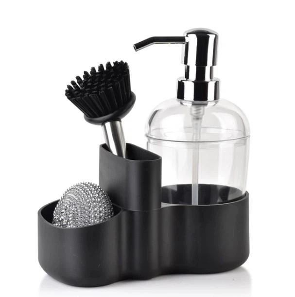 Диспенсер рідини для миття посуду Flora 300 мл. з дротяною губкою Cristie чорний 35938
