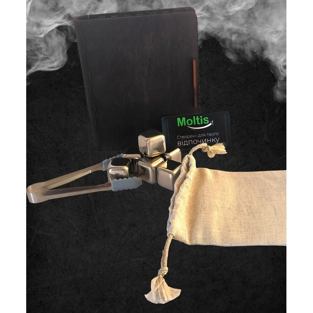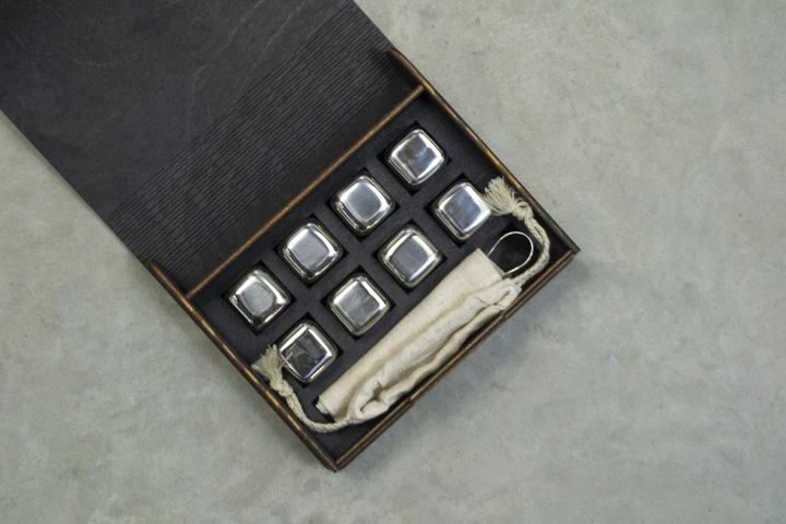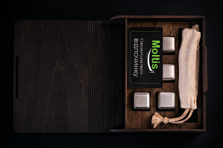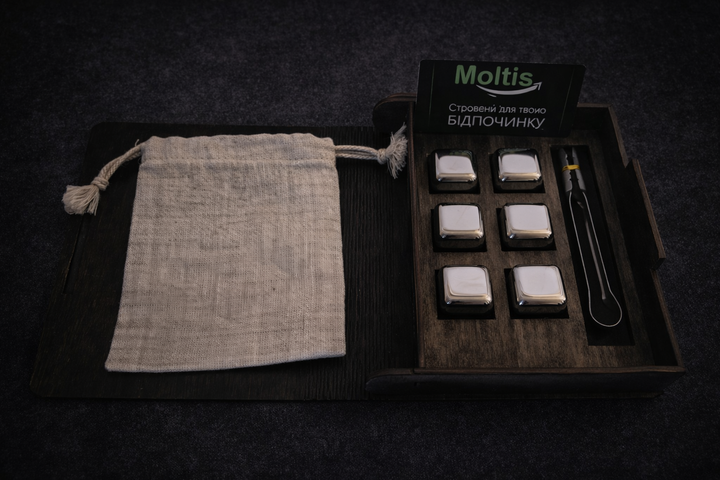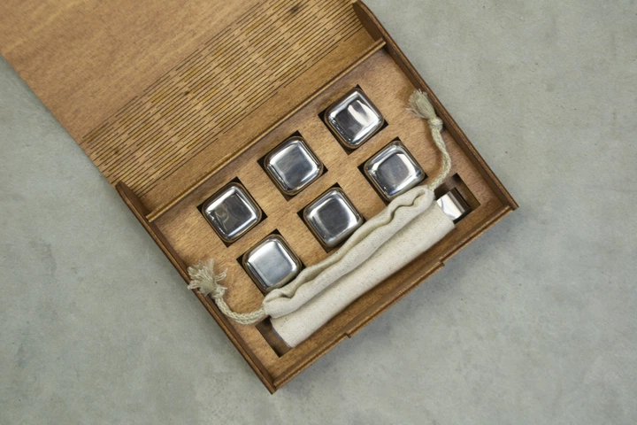 Кубики для віскі Moltis Relax Whiskey Stones Original Wood 6 шт з металу у серебряном цвете (без гравировки) MBS - 10505