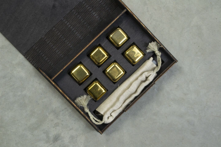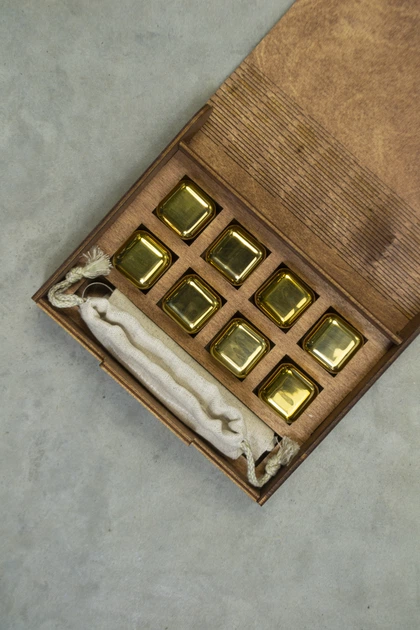 Кубики для віскі Moltis Relax Whiskey Stones Original Wood, 6 шт, металеві, золотисті (MBG-10509) 10091