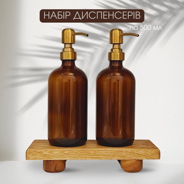 Набір скляних дозаторів (диспенсерів) на дубовій підставці 2х500 мл