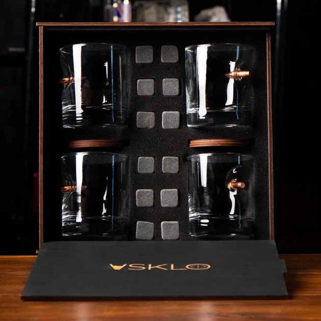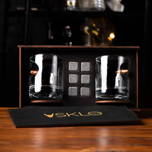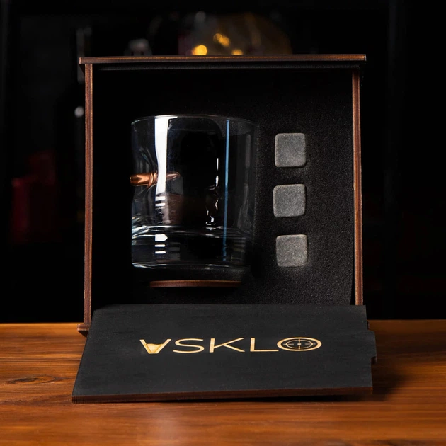 Каміння для віскі склянка для віскі зі справжньою пулею, кулею 7.62 мм + деревяна коробка, uwest