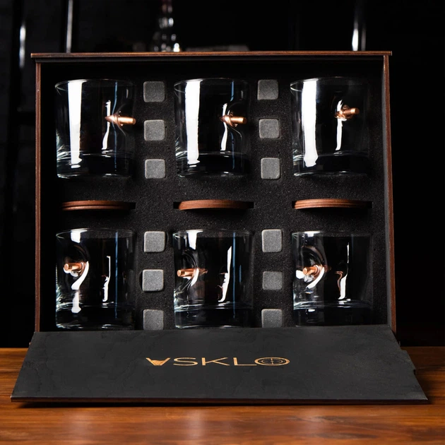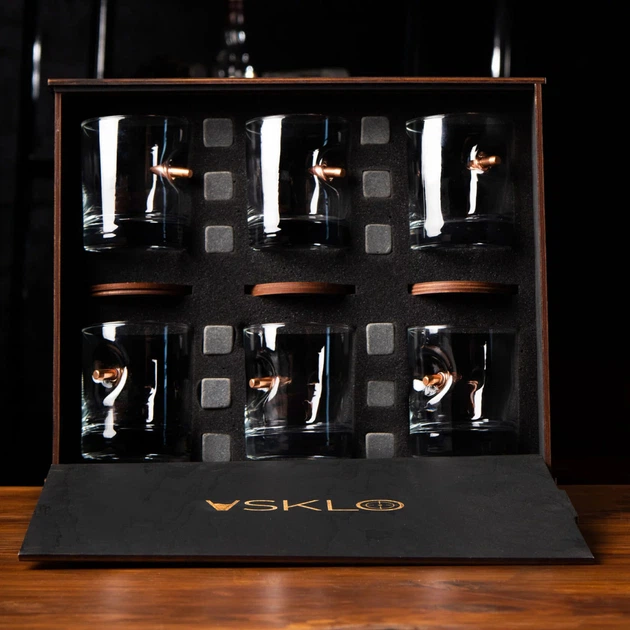 Каміння для віскі, склянки 6 шт. з кулею, пулею + деревяна коробка, uwest