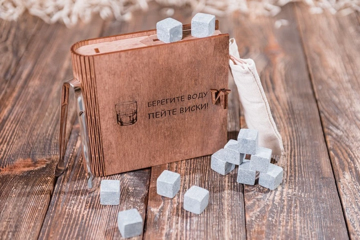 Подарочный набор камней для виски в шкатулке книге "Берегите воду"