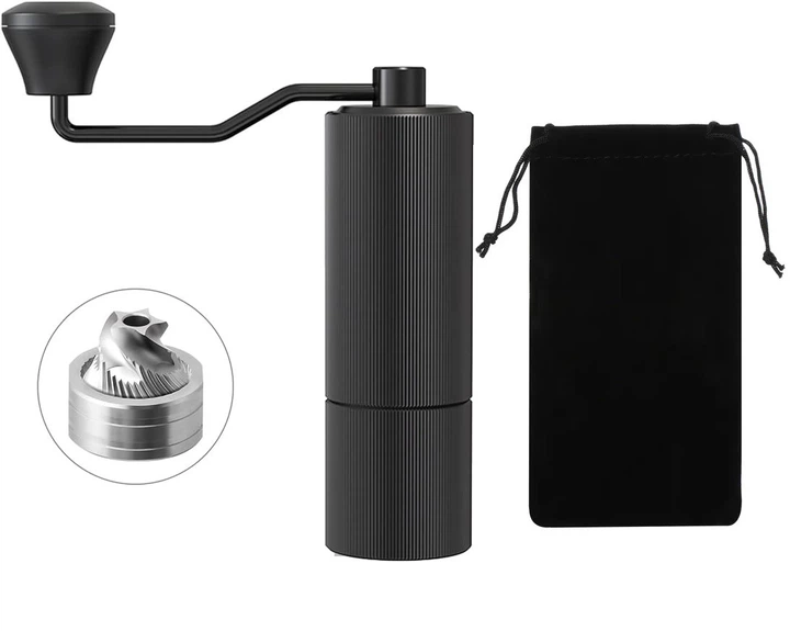 Ручна кавомолка зі сталевими жорнами регулювання помелу чорна