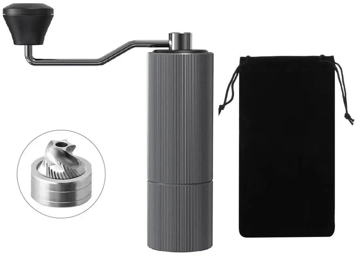 Ручна кавомолка з металевими жорнами і регулюванням помолу Сіра з чохлом