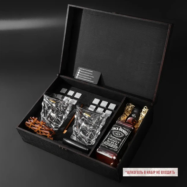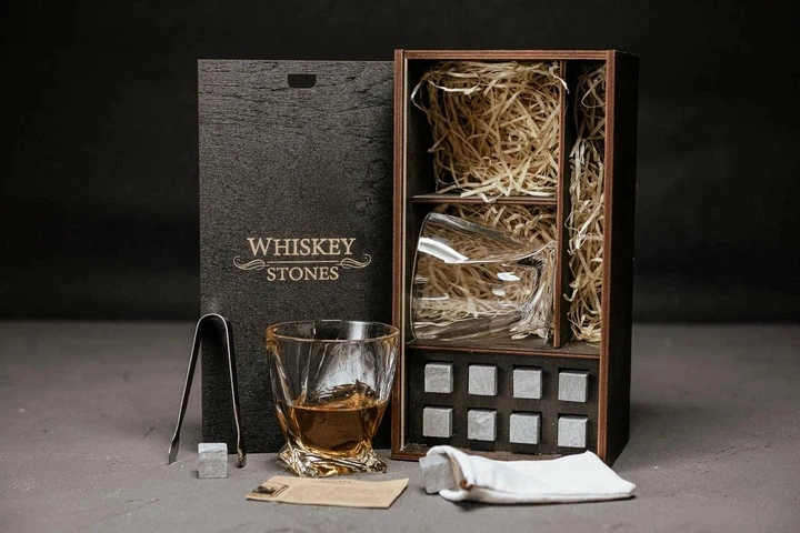 Подарунковий набір каменів для віскі з місцем під пляшку