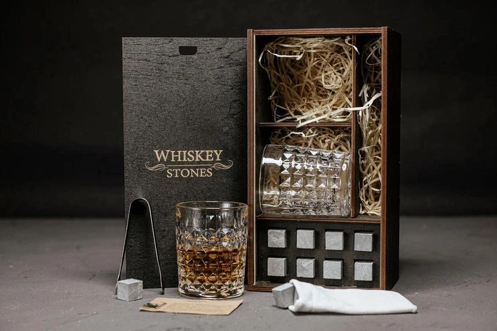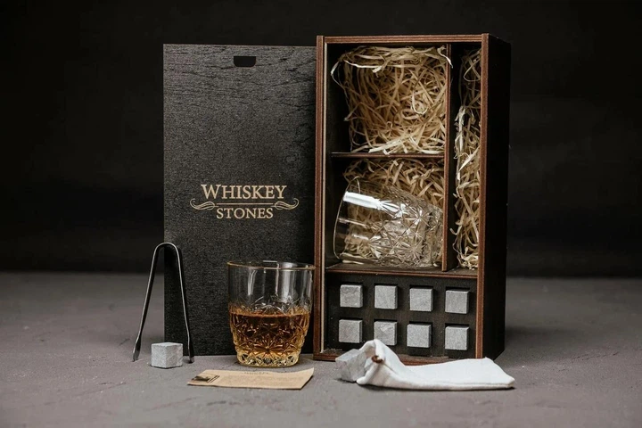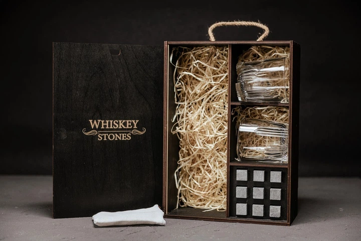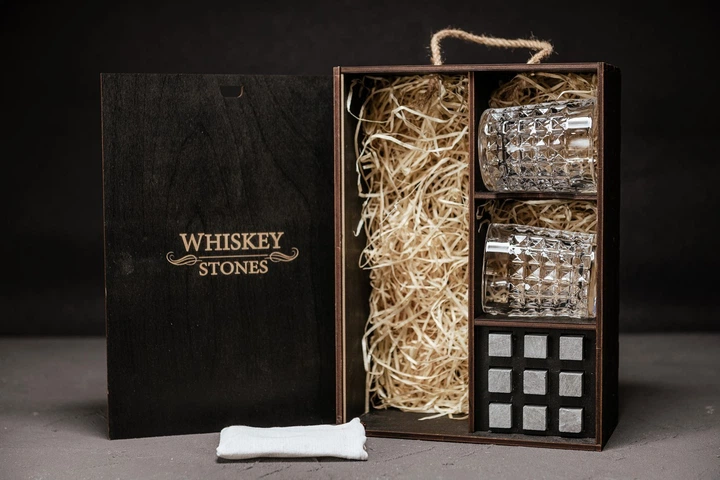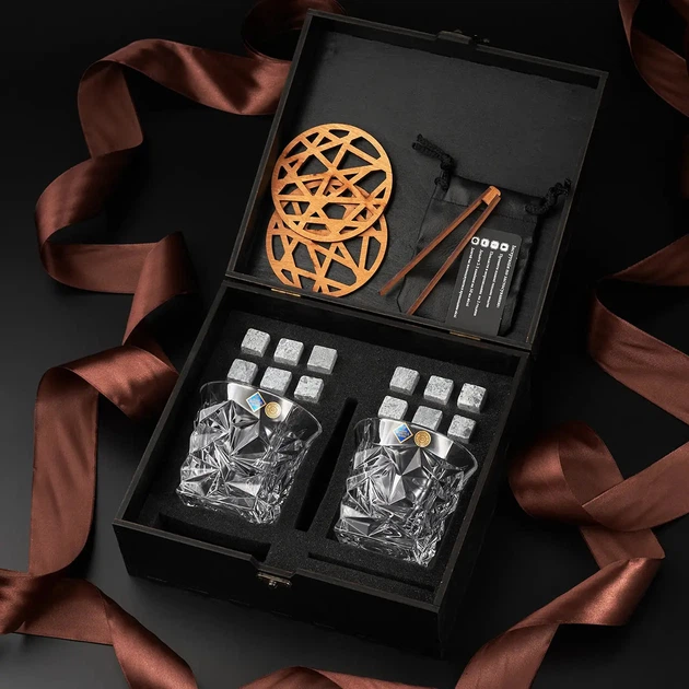 Преміальний набір каменів для віскі + дерев'яна коробка, uwest
