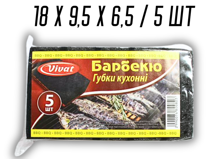 Губка FROM FACTORY BARBQ кухонна поролонова двостороння для посуду Барбекю 5шт/18х9,5х6,5см