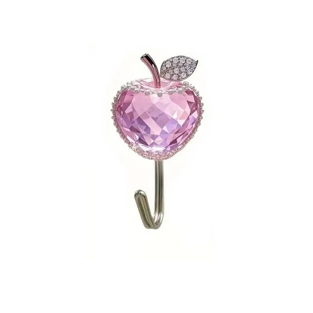Настінний самоклеючий гачок Кришталеве яблуко 2D плоский з акрилу для кухні, ванної, передпокою 1 шт. Сріблястий з рожевим