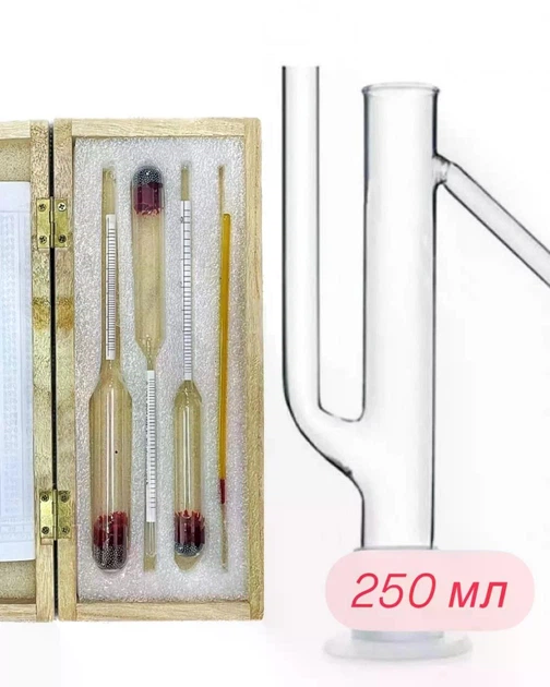 Набір для самогоноваріння: ареометри АСП-3 (ДСТУ) + скляний папуга 250 мл