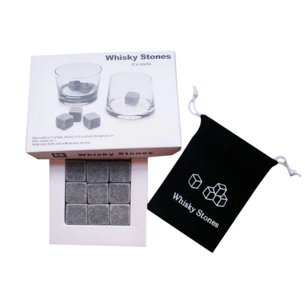 Камені для віскі 6 шт з одинарною склянкою та мішечком для зберігання в чорній коробці