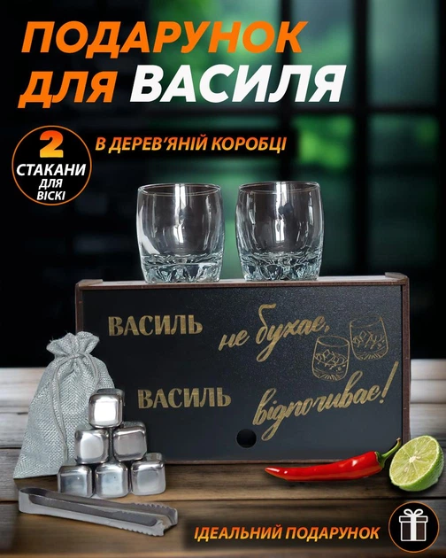 Набір для віскі Камені для віскі Стакани для віскі Подарунок на день закоханих оригінальний Подарунок для Василя на подаруно