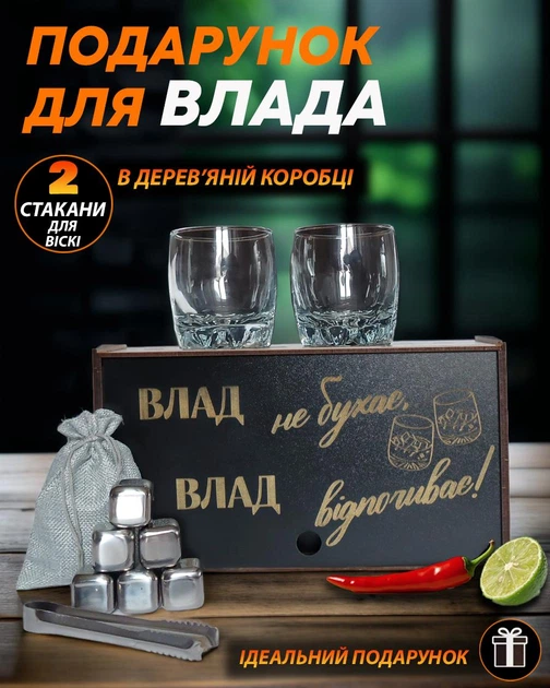 Набір для віскі Камені для віскі Стакани для віскі Подарунок на день закоханих оригінальний Подарунок для Влада на подарунок