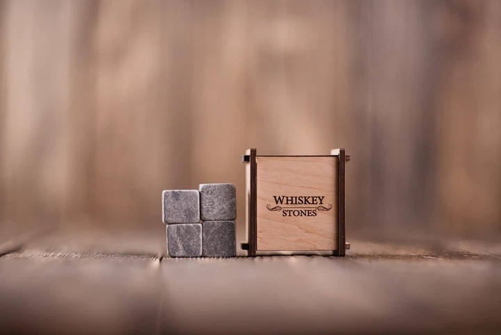 Камені для віскі зі стеатиту Whiskey Stones 4 штуки в дерев'яній скриньці + мішечок + щипці + інструкція
