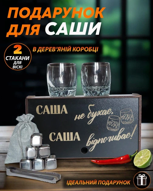 Набір для віскі Камені для віскі Стакани для віскі оригінальний Подарунок для Саши подарунок на День народження A-Perfect