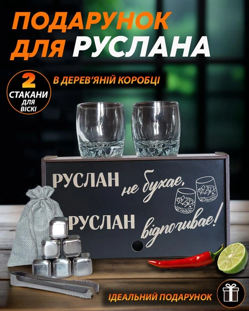 Набір для віскі Камені для віскі Стакани для віскі оригінальний Подарунок для Руслана на подарунок на День народження A-Perf