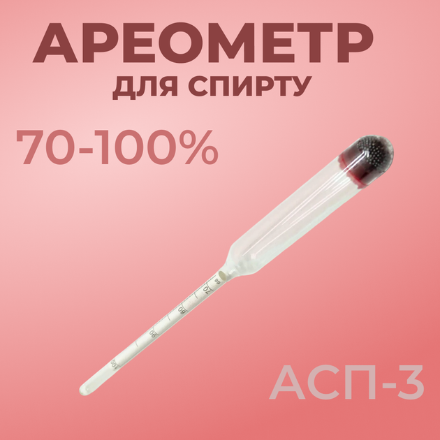 Ареометр для спирту АСП-3 (70–100) «Крапля», вимірювальний прилад для міцності спирту
