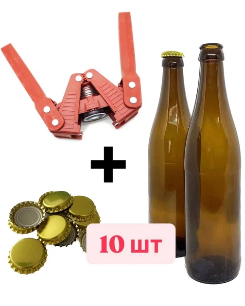 Набір для закупорки пива: укупорщик + кроненкорки золоті (10 шт) + пивні пляшки 500 мл (10 шт)